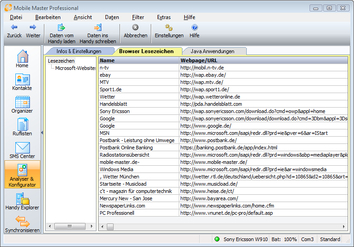 Mit Mobile Master können Sie die Lesezeichen des Handy Browsers verwalten. Bisher nur für Sony Ericsson Geräte.
